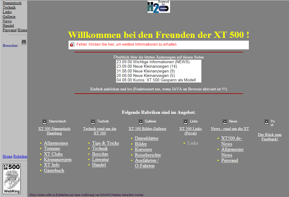 – Kleiner Umbau auf den Seiten. Die Startseite hat einige Änderungen erfahren. Die Laufschrift ist abgelöst durch eine 5-zeilige Klickbox, in der man jetzt (vorausgesetzt JAVA ist im Browser aktiviert) direkt zu den neuen Beiträgen klicken kann (oder zumindest in die Nähe). Außerdem kann man ab sofort die Rubrik, in der man landen möchte direkt in der Liste unter der jeweiligen Rubrik anwählen.